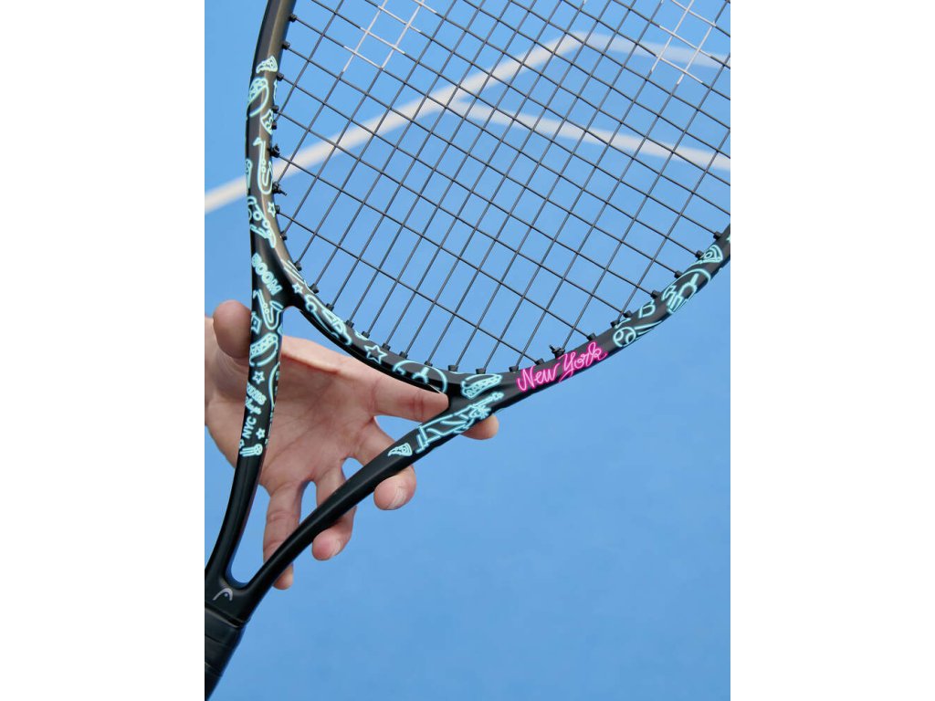 Raketa BOOM MP NEON je limitovanou edicí inspirovanou městem, které nikdy nespí – New Yorkem. Její zářivý design zahrnuje mrakodrapy, ikonickou telefonní budku, plátek pizzy a sochu svobody. Raketu podporuje Lorenzo Musetti, který propojuje zábavu a svěží vzhled s profesionálním výkonem.
