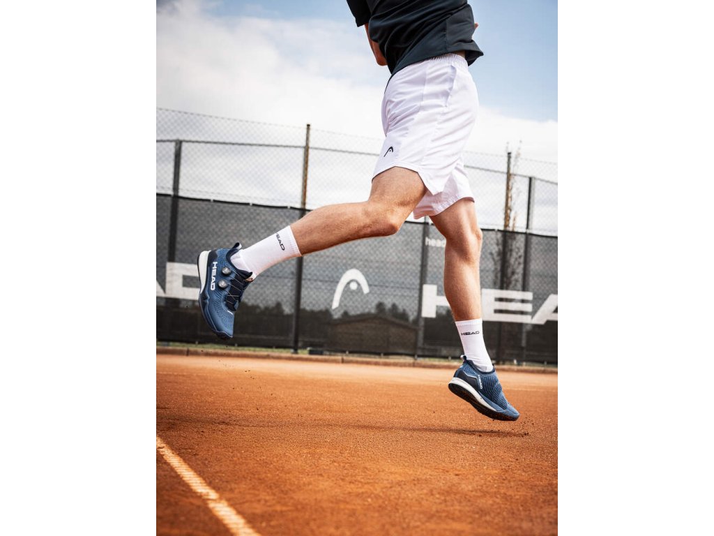 PU tvarovaný svršek s ochrannými a odlehčenými zónami spolu s konstrukcí se dvěma mezipodešvemi – DynaFoam v patě a reaktivní EVA vpředu – poskytuje vynikající tlumení a cit pro rychlé změny směru. Nová technologie CORE-FRAME stabilizuje nohu od špičky k patě a integrovaný systém chlazení zlepšuje ventilaci. Podrážka s celoplošným vzorkem rybí kosti z gumy HEAD Hybrasion+ zaručuje optimální přilnavost a odolnost na antukových kurtech. Elegantní design s logem HEAD dodává moderní styl.