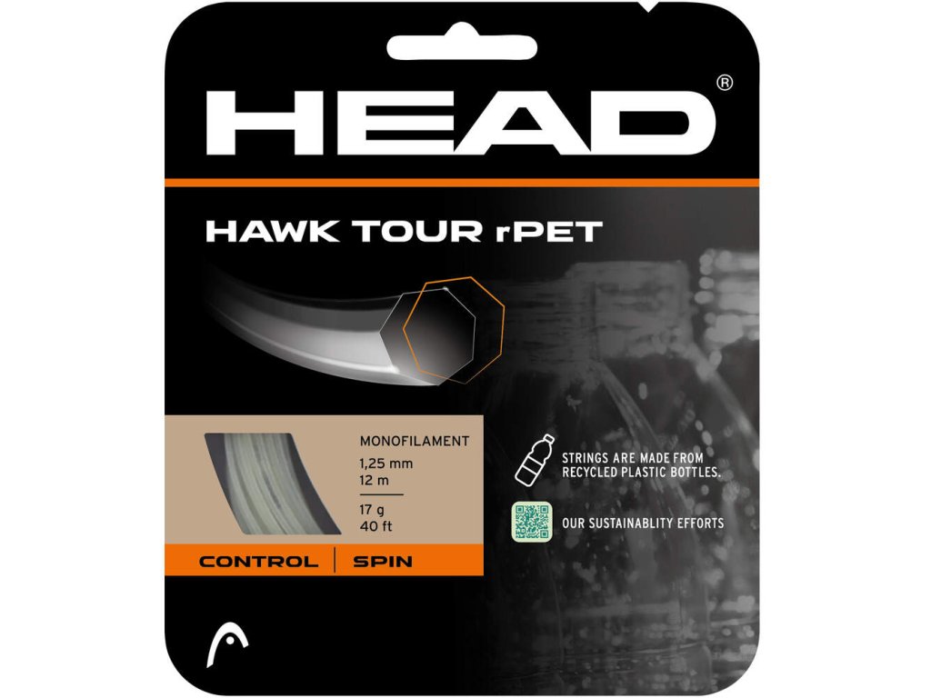 Výplet HAWK TOUR rPET je pokročilý co-polyesterový tenisový výplet vyrobený z recyklovaných PET materiálů, který spojuje výkon s udržitelností. Díky inovativní 7-stranné struktuře je výplet navržen pro extrémní a explozivní rotaci, zatímco pevná a předvídatelná odezva poskytuje hráčům sebevědomí při agresivní a útočné hře. Optimalizovaný pocit zaručuje ideální kombinaci kontroly, rotace, úderu, síly a pohodlí, což ocení hráči hledající dynamický a všestranný herní zážitek.