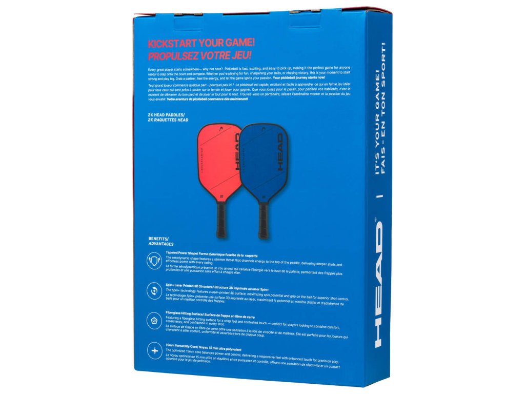 Sada HEAD Kickstarter Pack je perfektní volbou pro nové hráče, kteří chtějí kompletní vybavení pro vstup na kurt. Obsahuje dvě pálky Kickstarter Plus, které kombinují pohodlné držení a spolehlivý výkon, a dva míče HEAD Championship 40, připravené pro první tréninky i zápasy.