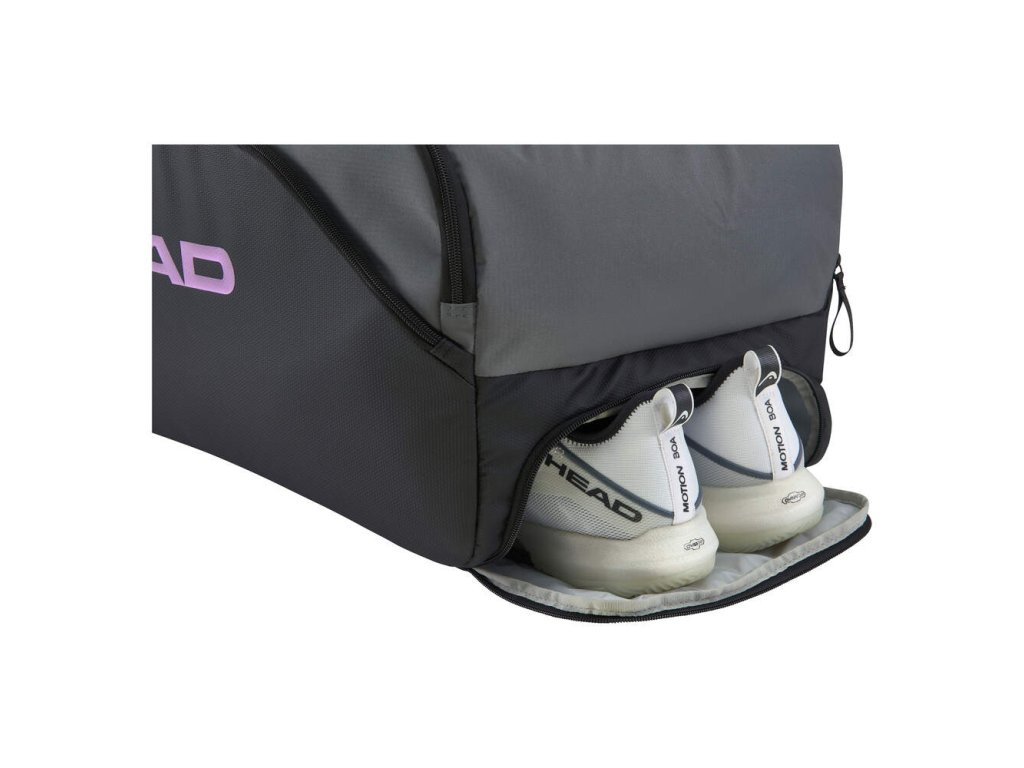 Samostatná přihrádka na boty je navržena tak, aby umožňovala snadný přístup k rukojeti rakety a zároveň udržela zbytek obsahu tašky čistý a přehledný. Moderní prémiový design inspirovaný sportovními a tenisovými taškami HEAD dodává celé konstrukci stylový a profesionální vzhled.