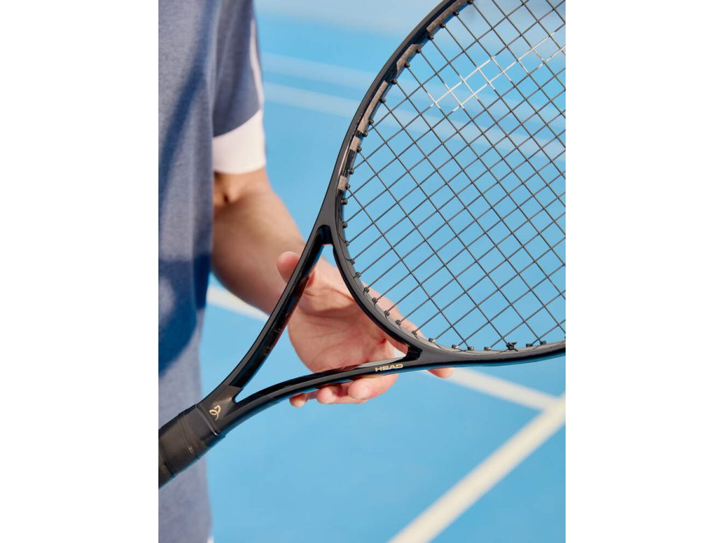 Exkluzivní HEAD SPEED MP LEGEND 2025 kombinuje elegantní vzhled s špičkovým výkonem pro pokročilé a ambiciózní hráče. Zlaté detaily, včetně loga Novaka Djokoviče a značky HEAD, byly inspirovány jeho zlatými okamžiky na kurtu a oblíbenou zlatou barvou. Černý lesklý povrch rakety je Novakovou osobní volbou, zatímco kované karbonové prvky na pozicích 3 a 9 hodin dodávají raketě prémiový design a zároveň zlepšují pocit při dopadu míče.