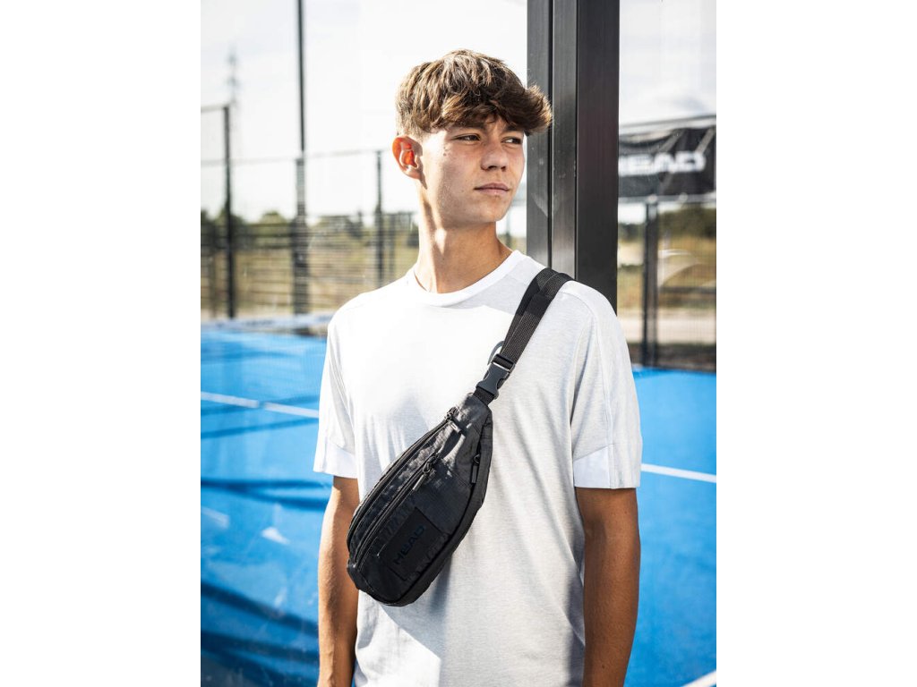 TOUR CROSSBODY BAG je vysoce univerzální taška vhodná pro hráče raketových sportů i každodenní použití. Nabízí hlavní přihrádku, rozšiřitelnou přihrádku na rakety a dvě kapsy na příslušenství. Stylový a praktický design doplňují ekologické detaily.