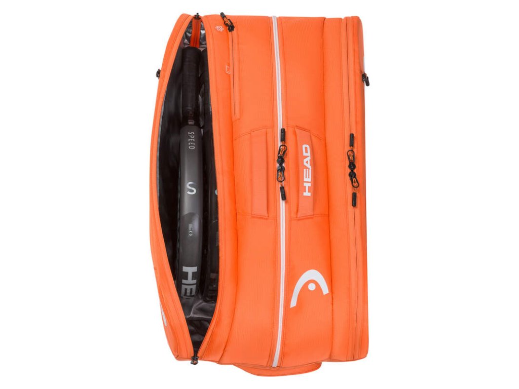 Tři hlavní přihrádky pojmou až 7 raket, přičemž jedna je vybavena technologií kontroly teploty CCT+, která chrání vaše rakety před extrémními teplotami. Dále taška nabízí vnitřní kapsu na příslušenství a integrovanou přihrádku na boty. Popruhy batohu umožňují pohodlné nošení. V souladu s environmentální odpovědností je visačka z recyklovaného papíru s konopným provázkem a taška je balena v recyklovaném plastovém obalu.