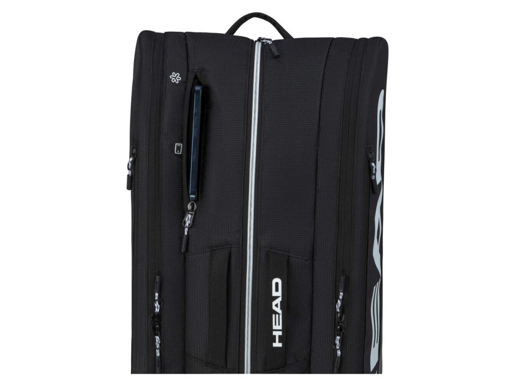 TOUR PADEL BAG L BK je moderní a funkční taška na rakety, navržená pro hráče, kteří chtějí kombinovat styl a praktičnost. Vyrobena z nových tkanin, včetně reflexního materiálu, taška zajišťuje viditelnost a nepřehlédnutelný design. HEAD reagoval na požadavky hráčů – taška nyní obsahuje dvě velké vnější kapsy na příslušenství a novou kapsu na telefon pro rychlý přístup.