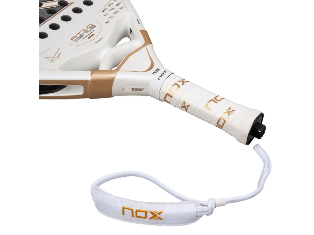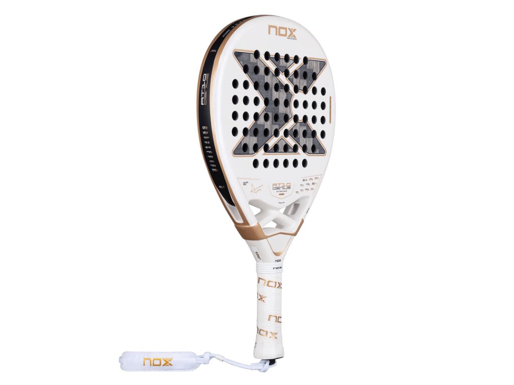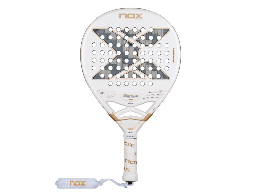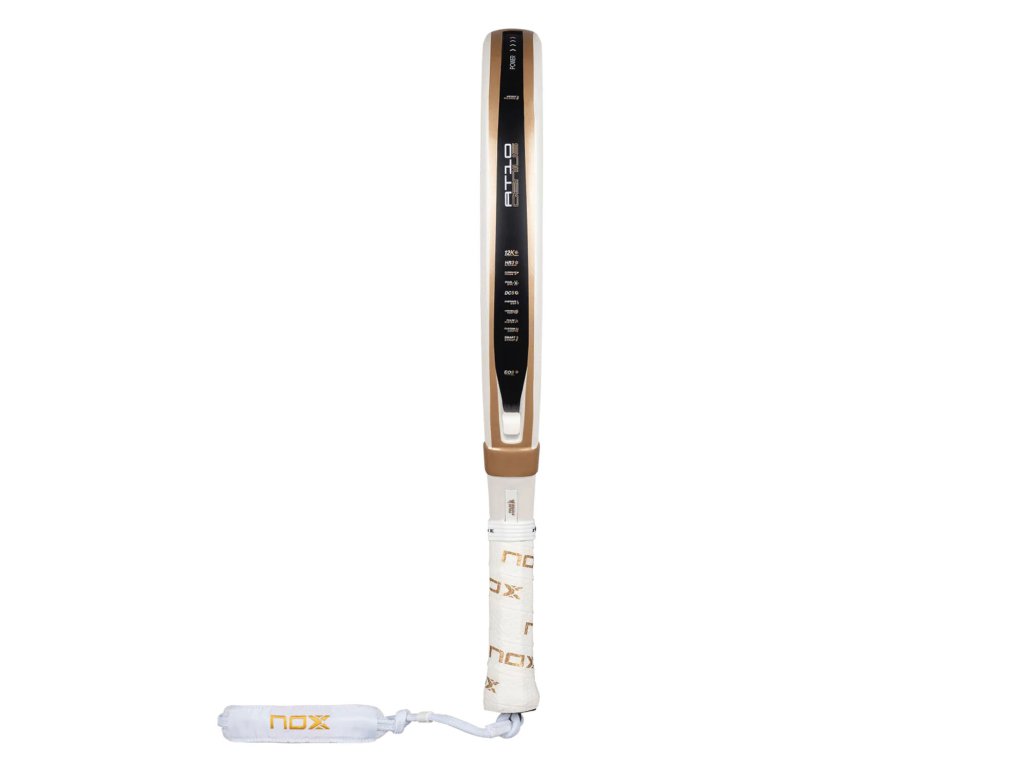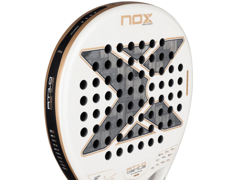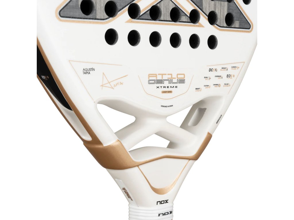 Raketa NOX AT10 Genius 12K Alum XTREME, vyvinutá ve spolupráci s padelovým specialistou Agustínem Tapiou, spojuje elegantní design s špičkovými materiály pro maximální výkon. Aerodynamický karbonový rám a EVA jádro poskytují pevný a citlivý odraz míče, zatímco aluminizovaný 12K karbonový povrch zajišťuje stabilitu a kontrolu.