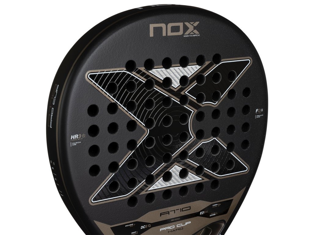 NOX AT10 Pro Cup HARD 2026 je raketa pro pokročilé hráče, kteří hledají maximální sílu a explozivní údery. Kombinuje karbonový rám, aluminizovaný sklolaminát a jádro HR3 Hard EVA pro pevný a výkonný pocit při každém úderu.