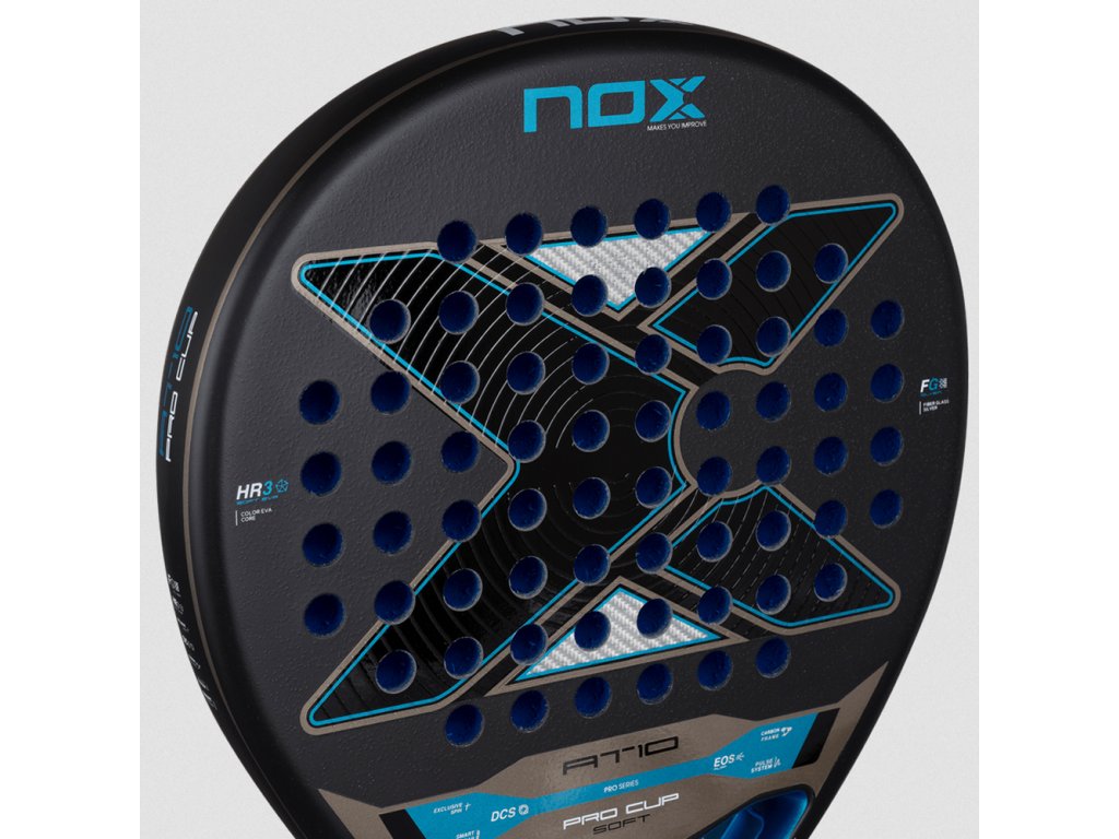 NOX AT Pro Cup Soft 2026 je raketa pro pokročilé hráče, kteří chtějí maximální pohodlí a přesnost. Díky kombinaci uhlíkového rámu, aluminizovaného sklolaminátu a jádra HR3 Soft EVA nabízí měkký, ale přesný úder.