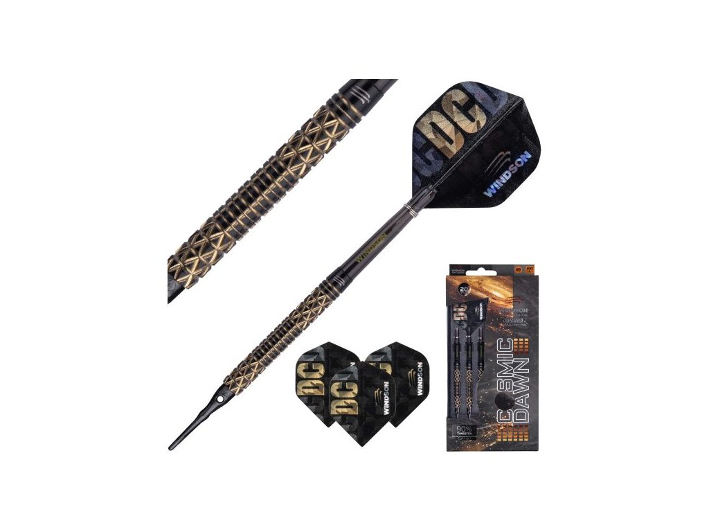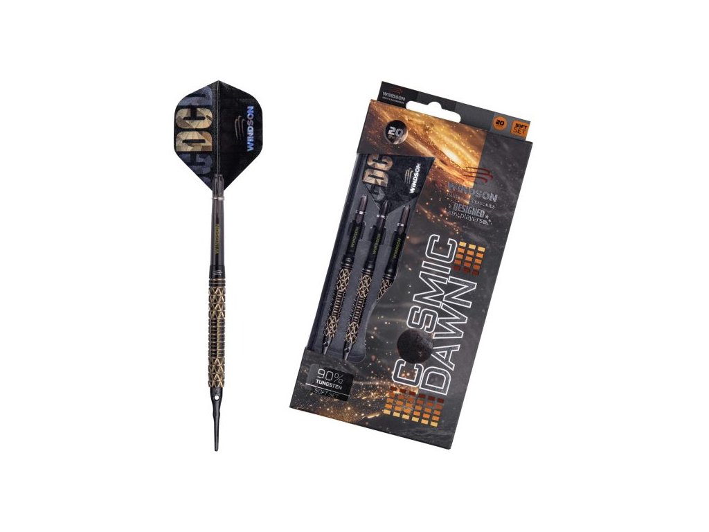 Šipky COSMIC DAWN kombinují 90% tungsten, agresivní rýhování a výrazný zlato-černý design. Nabízejí stabilní let, pevný úchop a profesionální vzhled. Vhodné pro elektronické terče.