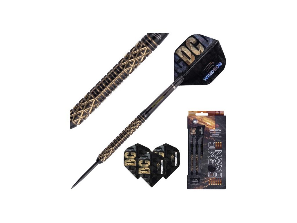 Šipky COSMIC DAWN – tungstenové šipky s agresivním rýhováním a aerodynamickými PET Laser letkami pro maximální kontrolu a přesnost hodu. Dodávány v cestovním pouzdře.